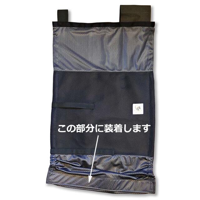 腹下の面ファスナー部分に取り付けて、お腹回りを10cm程度延長可能です。