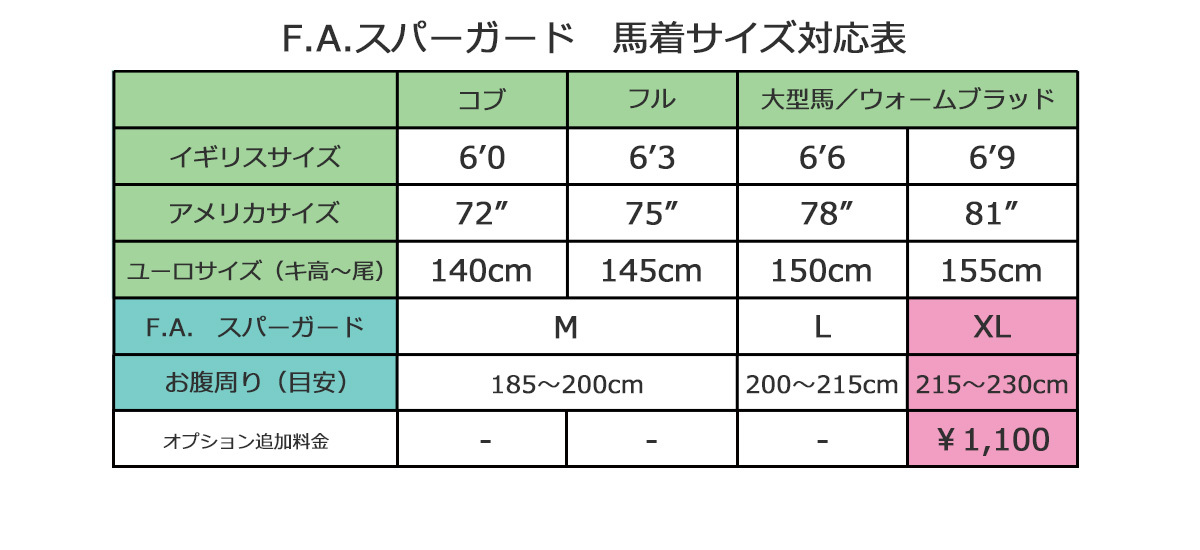 ※お腹回りの採寸ができない場合は、ページ下部の馬着サイズ対応表を目安にしてください。(馬の体型によっては当てはまらない場合がございます。)